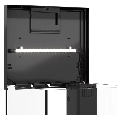 Grâce à la conception intelligente du couvercle, la condensation est efficacement dirigée de retour dans l’aquarium lorsqu’il est fermé, contribuant à maintenir un environnement propre et sûr. Une trappe d’alimentation intégrée permet un nourrissage quotidien pratique et est entièrement compatible avec l’alimentation automatique JUWEL EasyFeed.